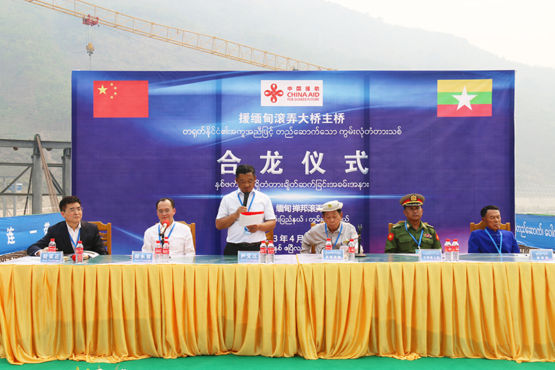 2023年4月12日,在缅甸盛大的泼水节即将来临之际,由公司承建的援缅甸滚弄大桥主桥合龙仪式顺利举行。