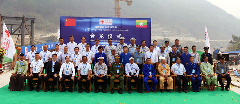 合龙仪式由临沧市商务局局长周永智主持。公司援缅甸滚弄大桥施工技术组负责人彭海介绍了项目情况,缅甸建设部桥梁司副司长吴梭温敏先生做了致辞,临沧市人民政府副秘书长尹文江致辞并宣布大桥合龙,云南阳光道桥股份有限公司董事长荀家正向嘉宾们介绍了大桥建设的相关情况,中缅双方有关部门代表参加了合龙仪式。
