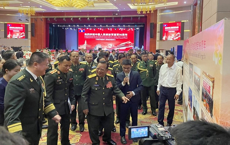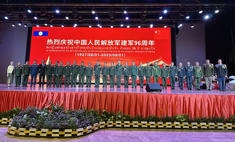 8月1日,中国驻老挝大使馆在老挝首都万象隆重举行庆祝中国人民解放军建军96周年招待会。老挝副总理兼国防部长占沙蒙上将、国防部副部长兼老挝人民军总参谋长坎良中将、公安部副部长贡通中将、国防部副部长翁坎少将等高级将领,老挝党政军警相关部门、华侨华人、中资机构代表及各国驻老挝武官团等500余人出席。云南阳光道桥作为在老代表性中资机构受邀参加招待会,并在会场以展板形式向出席庆祝会的中老各届嘉宾展示了公司在老代表性工程。