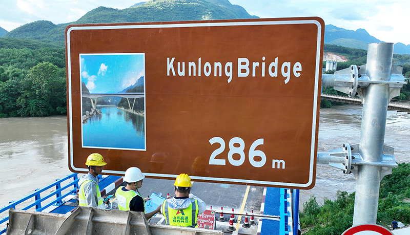 援缅甸滚弄大桥项目于2020年12月开工建设,项目位于缅甸掸邦腊戍县滚弄镇西侧,距离中国云南省临沧市孟定清水河口岸约24公里,距离缅甸掸邦腊戍县约130公里,施工里程全长4.59公里,含新建滚弄大桥(桥长286米)及其两岸连接线道路4.3公里,主要工程内容包括桥梁、路基、路面、绿化和交通安全设施等,项目的建成,将解决缅北干线清登公路过江难的问题,极大改善沿线群众的出行条件,对深化中缅经贸合作、促进边境地区经济社会高质量发展、维护边疆繁荣稳定具有重大意义。
