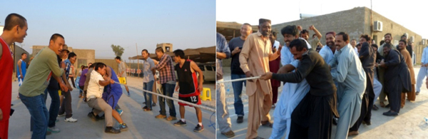 为了让远在国外的员工过上一个快乐和谐的春节,在施工技术组李组长的领导下,援巴项目部也举行了“迎新春”系列活动,活动内容主要有篮球比赛、拔河比赛、兵乓球比赛、象棋比赛及双Q比赛等一系列活动。活动以“全民参与,娱乐为主”为原则,以“文明和谐,凝聚力量”为宗旨,积极倡导喜庆祥和、文明和谐的节日氛围,旨在促进援巴项目全体员工团结一致,和谐奋进的精神风貌。