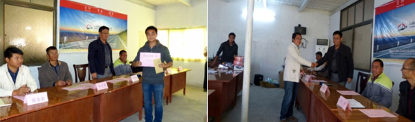 2014年2月2日早9时,施工技术组李组长宣布:为期两天的迎新活动办得俭朴热烈,取得了圆满成功,并举行了颁奖仪。随后,李组长在会上部署了节后的施工任务,他说:各部门要加强协作,加大力度,各班组要有机协调,抓紧施工,各职工要尽心竭力,扎实工作,争取早日完成N55号公路的施工任务,尽快将工作重点转移到N5号公路的施工任务中。